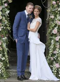 The pair looked overwhelmed with emotion as they wed in front of family and friends at Babington House in Bath — the same venue James Corden chose last year.More than 120 guests were invited along to their special day – including rapper Example, Radio 1 DJ and producer Skream, singer Miles Kanes, Made In Chelsea stars Caggie Dunlop and Rosie Fortescue and singer Lily Allen and her husband Sam Cooper..